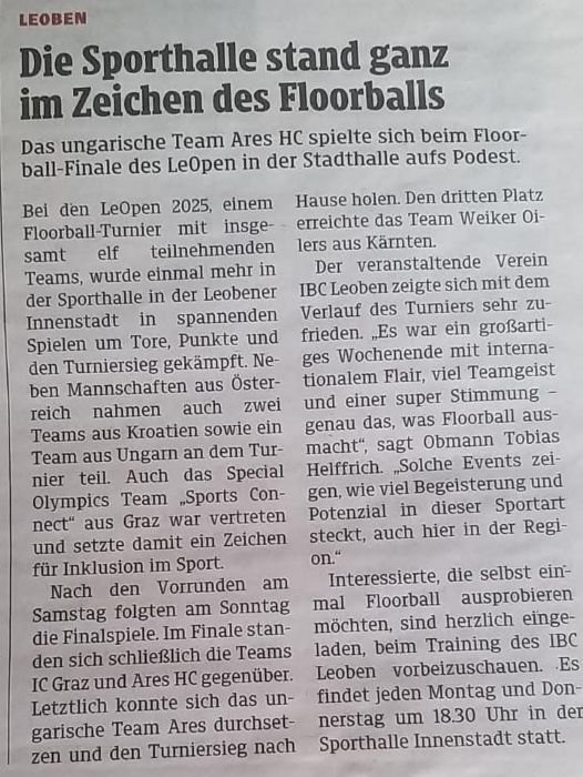 Szp szm kznsg eltt az IC Graz volt az ellenfl a dntben. Az IBC Leoben oldaln ghy rtkeltk a dntt: " A mai nagydnt volt a koronzs: az IC Graz s a magyar csapat, az Ares HC megragad prbajban lltak szembe egymssal. Temp, taktika, rzelem – a jtkban minden benne volt! A vgn Ares kpes volt rvnyesteni akaratt s bebiztostotta a tornagyzelmet."