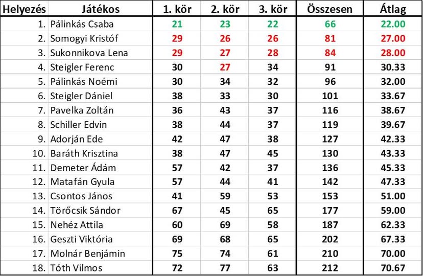 I. Zsmbok Kupa Minigolf Verseny - Versenykirs |