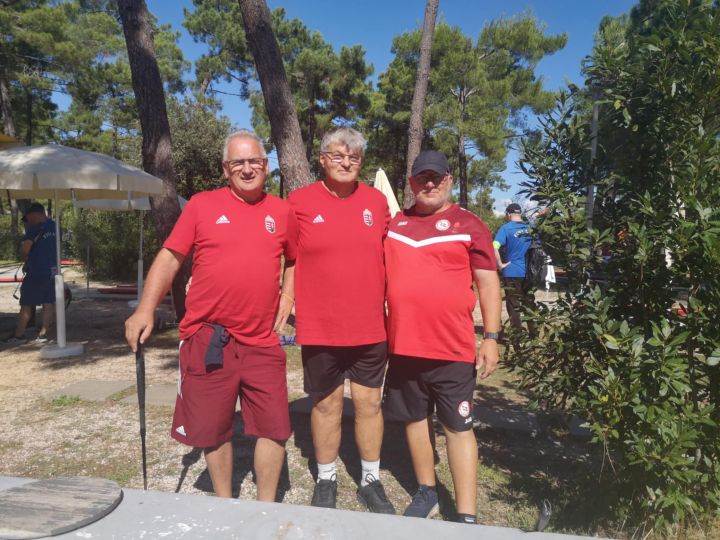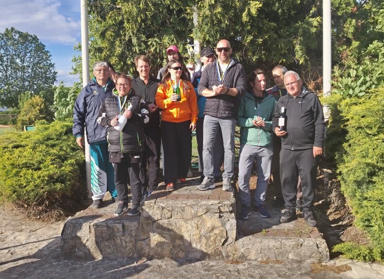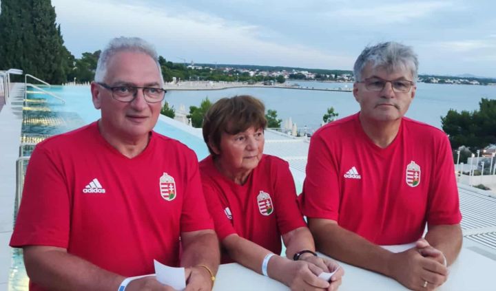 A magyar csapat a Senior EB-n Zatonban. Balrl Steigler Ferenc, kzpen Szendy Lujza, jobb oldalon Pavelka Zoltn.