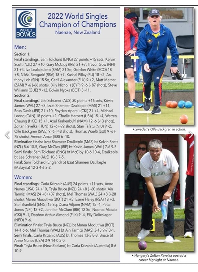 A eredmnyeket a www.bowlsnevzealand.co.nz oldalon lehetkvetni.